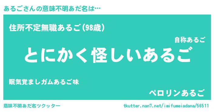 | 女子向けラノベタイトル風あだ名 | 『あるごの卵を拾いまして』『闇のあるご』 |