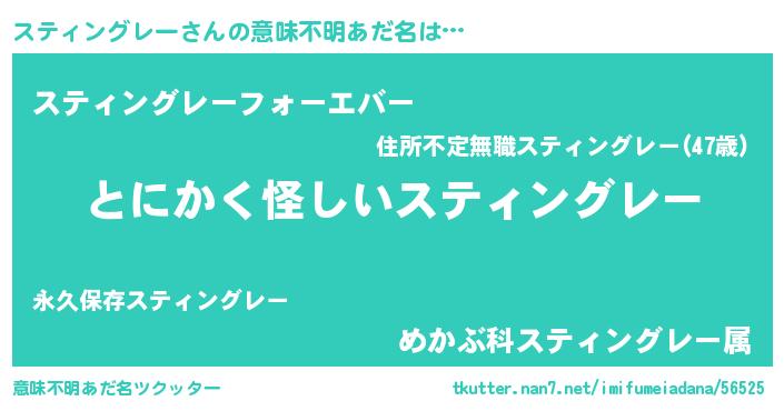 | 胡散臭い通販商品みたいなあだ名 | 『伝統あるサプリメント…その名も「スティングレー」』 |