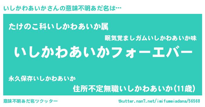 | ヘコむあだ名 | 『酢こんぶ』『いしかわあいか(笑)』 |