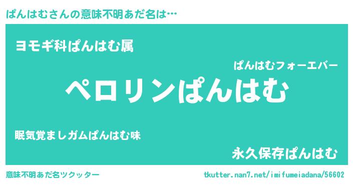| ヘコむあだ名 | 『ぱんふぇ~』『ぱんはむ(遠い目)』 |
