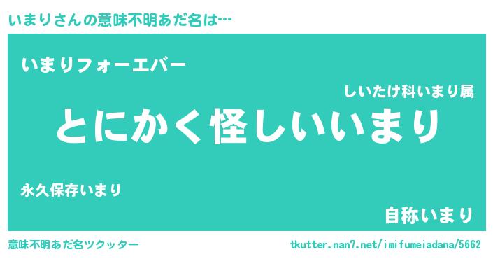 | 胡散臭い通販商品みたいなあだ名 | 『信頼と実績のサプリメント…その名も「いまり」』 |