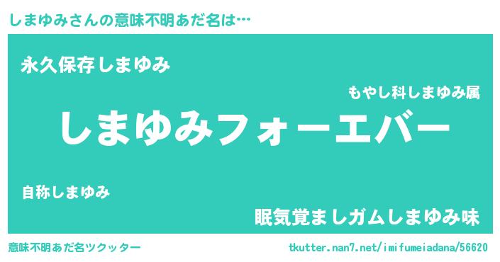 | 男性向けラノベタイトル風あだ名 | 『しまゆみに滅ぼされるだけの簡単なお仕事です』 |