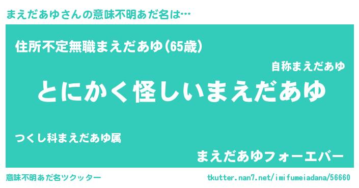| 男性向けラノベタイトル風あだ名 | 『まえだあゆの嫁は女の子じゃないと思った?』 |