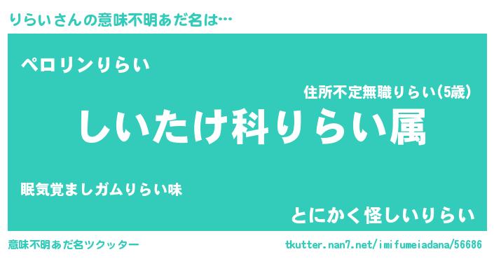 | ヘコむあだ名 | 『りらにー』『りらお』『酢こんぶ』 |