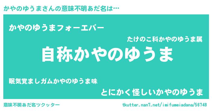 | 欧米人風あだ名 | 『ケンブリッジかやのゆうま』 |
