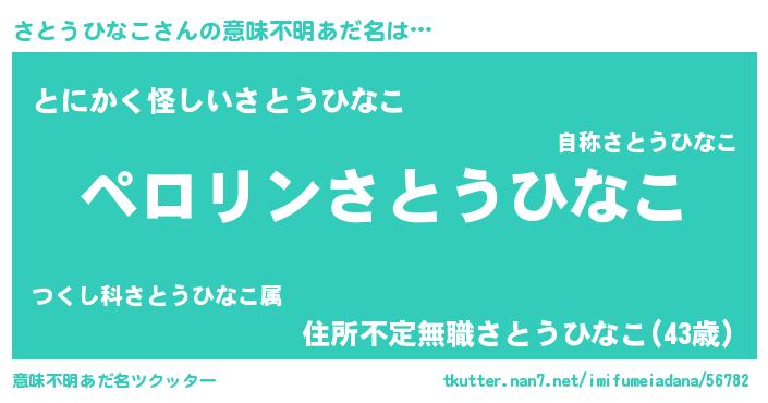 | ヒーロー風カッコイイあだ名 | 『スーパーサトウヒナコ』『炎刃騎士サト』 |
