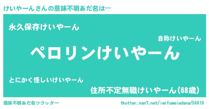 | 女子向けラノベタイトル風あだ名 | 『(仮)けいやーんのやんごとなき事情』 |
