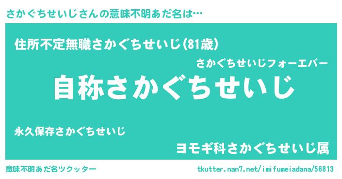 | 男性向けラノベタイトル風あだ名 | 『Re:さかぐちせいじから始める異世界生活』 |