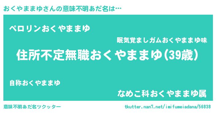 | 料理風あだ名 | 『おくやままゆのカルパッチョ風』 |