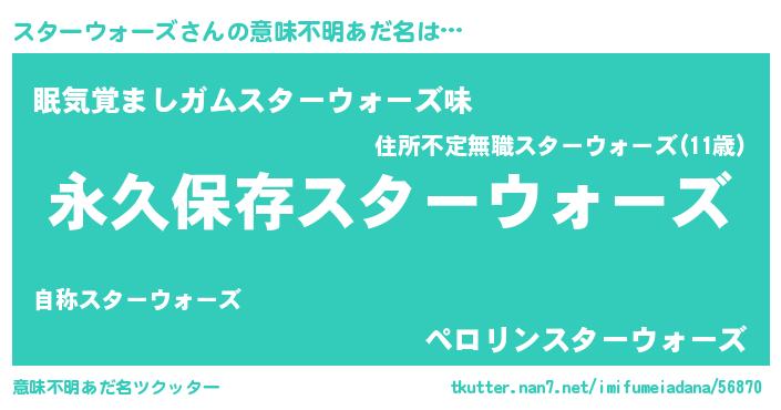 | ヘコむあだ名 | 『スターウォーズ(爆)』『スタもー』 |