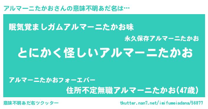 | 料理風あだ名 | 『アルマーニたかおの豆乳スープ』 |