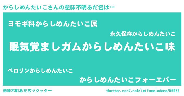 | ヒーロー風カッコイイあだ名 | 『友情の使者からしめんたいこ』 |