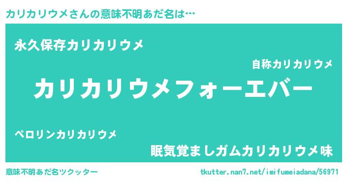 | ファンタジー風あだ名 | 『エターナルカリカリウメー』 |
