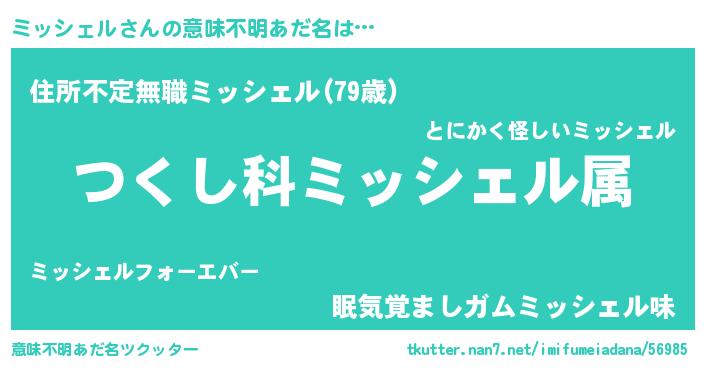 | ヒーロー風カッコイイあだ名 | 『仮面ミッダー』『慈愛の使者ミッシェル』 |