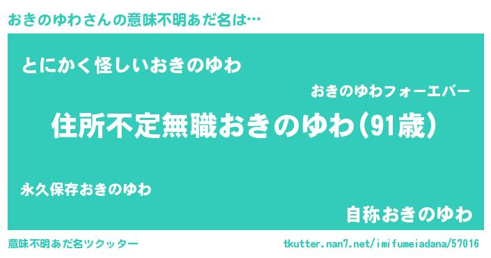 | 女子向けラノベタイトル風あだ名 | 『乙女ゲームの破滅フラグしかない悪役おきのゆわに転生してしまった…』 |