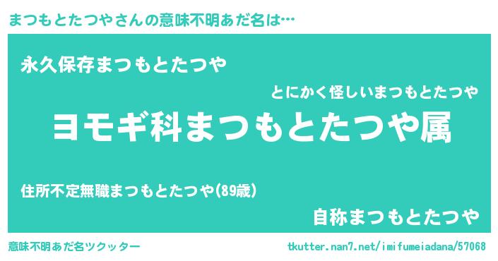 | 男性向けラノベタイトル風あだ名 | 『まつもとたつやに滅ぼされるだけの簡単なお仕事です』 |