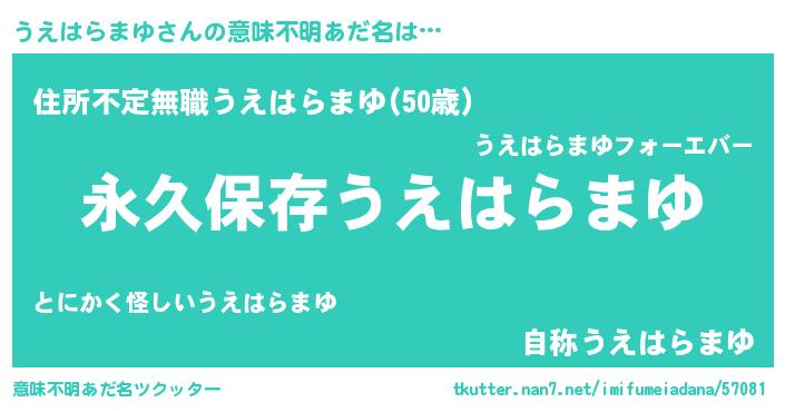 | 胡散臭い通販商品みたいなあだ名 | 『来世でも幸せになれる水素水…その名も「うえはらまゆ」』 |