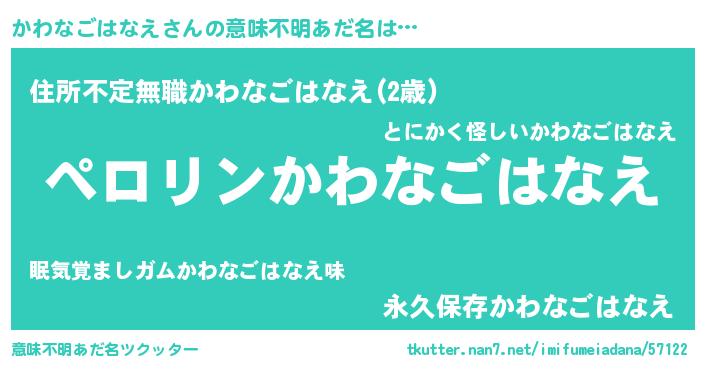 | 男性向けラノベタイトル風あだ名 | 『かわなごはなえの憂鬱』 |