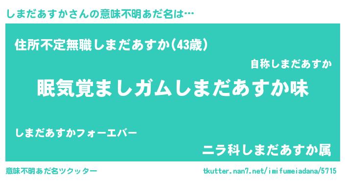 | 男性向けラノベタイトル風あだ名 | 『ノーゲーム・ノーシマダアスカ』 |