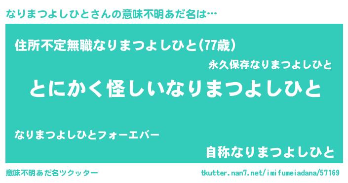 | 胡散臭い通販商品みたいなあだ名 | 『全米が絶賛したサプリメント…その名も「なりまつよしひと」』 |
