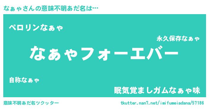 | ヒーロー風カッコイイあだ名 | 『ウルトラなぁゃマン』『スーパーナァャ』 |