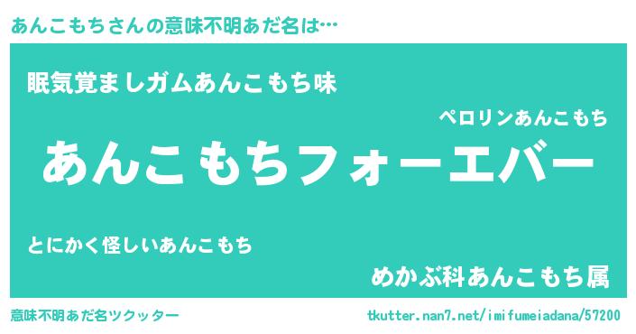 | 男性向けラノベタイトル風あだ名 | 『うちのあんこもちが世界を掌握している!』 |