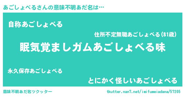 | 男性向けラノベタイトル風あだ名 | 『おまえをオタクにしてやるから、俺をあごしょべるにしてくれ! 』 |
