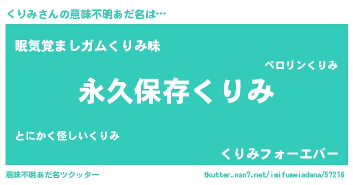 | ヘコむあだ名 | 『くりみ(爆)』『つくし』『くりもー』 |