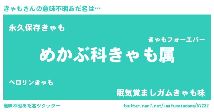 | ヘコむあだ名 | 『きゃも(笑)』『つくし』『きゃを』 |