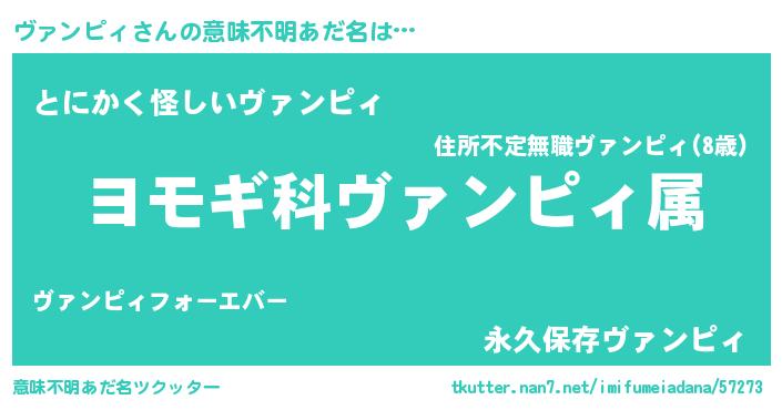 | 男性向けラノベタイトル風あだ名 | 『ヴァンピィに滅ぼされるだけの簡単なお仕事です』 |