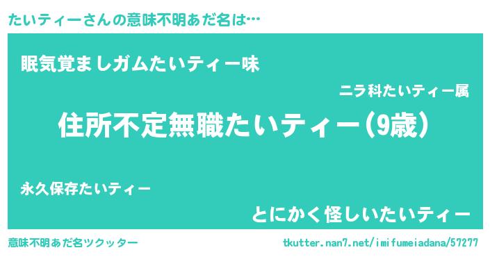| ヒーロー風カッコイイあだ名 | 『仮面タイダー』『慈愛の使者たいティー』 |
