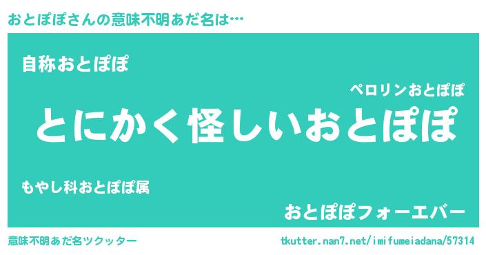 | 胡散臭い通販商品みたいなあだ名 | 『信頼と実績のサプリメント…その名も「おとぽぽ」』 |