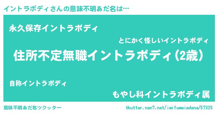 | ヘコむあだ名 | 『イントラボディ(小並感)』『インっ子』 |