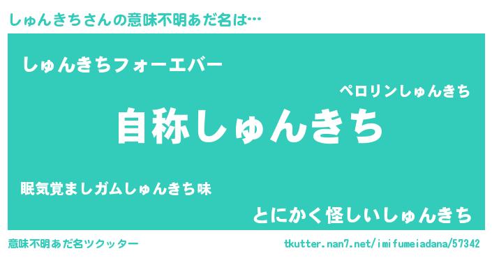 | ヒーロー風カッコイイあだ名 | 『最強戦士シュンキチ』『暗黒騎士シュ』 |