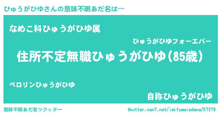 | 女子向けラノベタイトル風あだ名 | 『乙女ゲームの破滅フラグしかない悪役ひゅうがひゆに転生してしまった…』 |