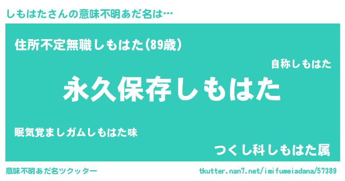 | 胡散臭い通販商品みたいなあだ名 | 『絶対に幸福をもたらす水素水…その名も「しもはた」』 |