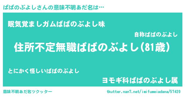 | 欧米人風あだ名 | 『ダレノガレばばのぶよし』 |