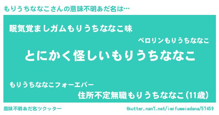 女子向けラノベタイトル風あだ名 | 『もりうちななこの卵を拾いまして』 |