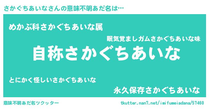 | 男性向けラノベタイトル風あだ名 | 『うちのさかぐちあいなが世界を掌握している!』 |