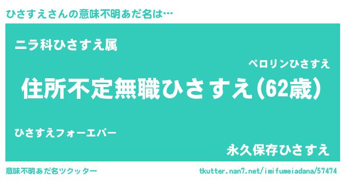 | 男性向けラノベタイトル風あだ名 | 『この素晴らしい世界にひさすえを!』 |