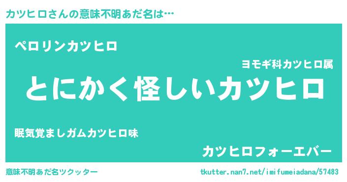 | 胡散臭い通販商品みたいなあだ名 | 『信頼と実績のサプリメント…その名も「カツヒロ」』 |