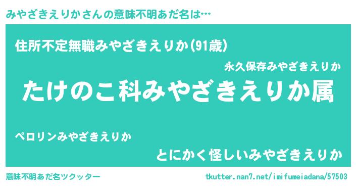 | 欧米人風あだ名 | 『みやざきえりか・ステッグマイヤー』 |