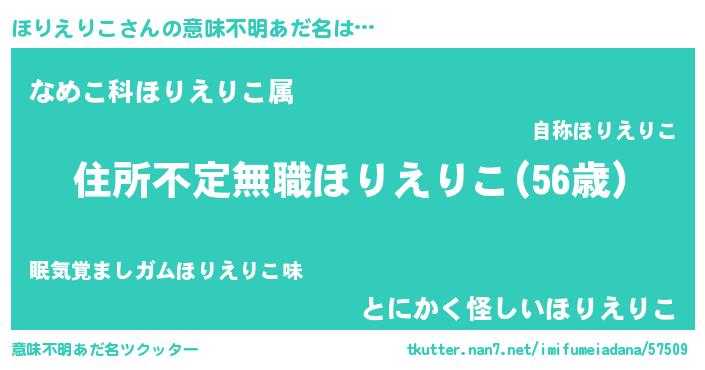 | ヘコむあだ名 | 『ほりっ子』『ほりえりこ(遠い目)』 |
