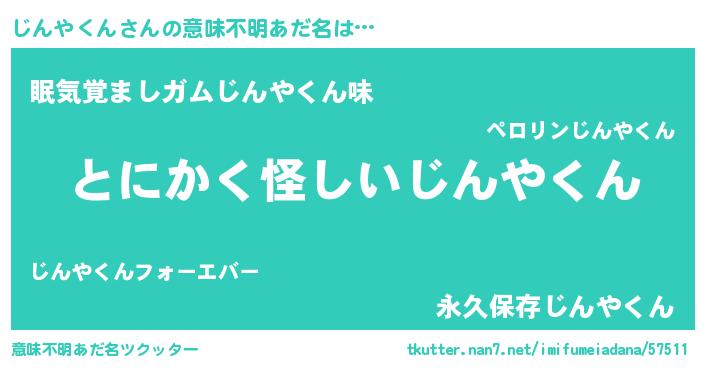 | 男性向けラノベタイトル風あだ名 | 『じんやくんの嫁は女の子じゃないと思った?』 |