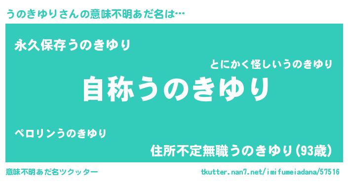 | 男性向けラノベタイトル風あだ名 | 『Re:うのきゆりから始める異世界生活』 |
