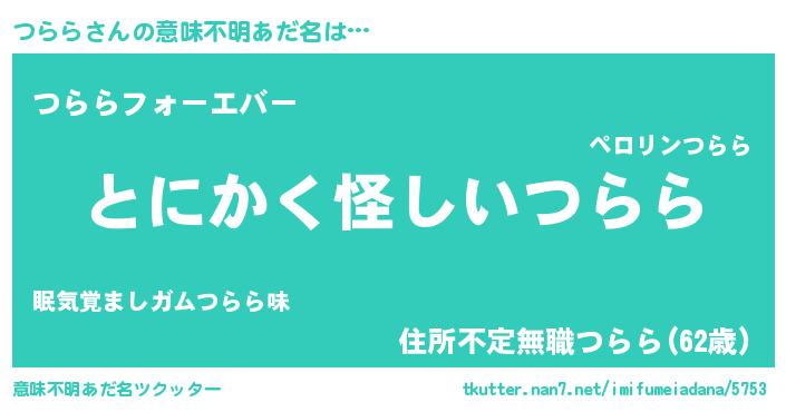 | ファンタジー風あだ名 | 『ファントムツラス』『ヴァルツラーナ』 |