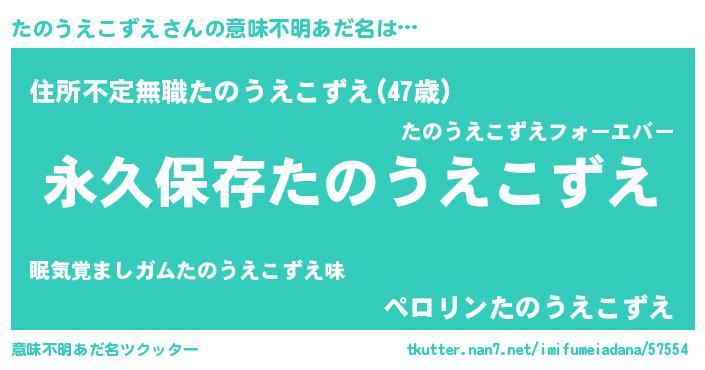 | 男性向けラノベタイトル風あだ名 | 『たのうえこずえという概念が存在しない退屈な世界 』 |