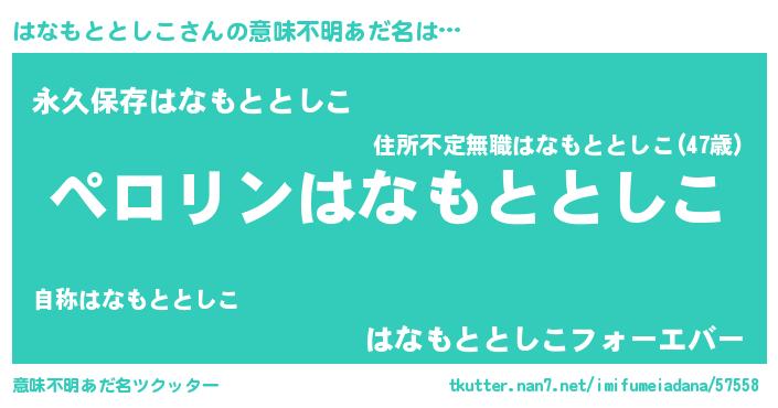 | 胡散臭い通販商品みたいなあだ名 | 『必ず成功する霊験あらたかなお札…その名も「はなもととしこ」』 |