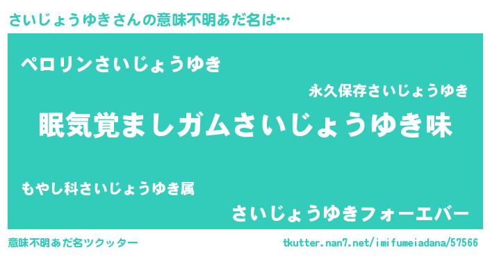 | 男性向けラノベタイトル風あだ名 | 『うちのさいじょうゆきが世界を掌握している!』 |