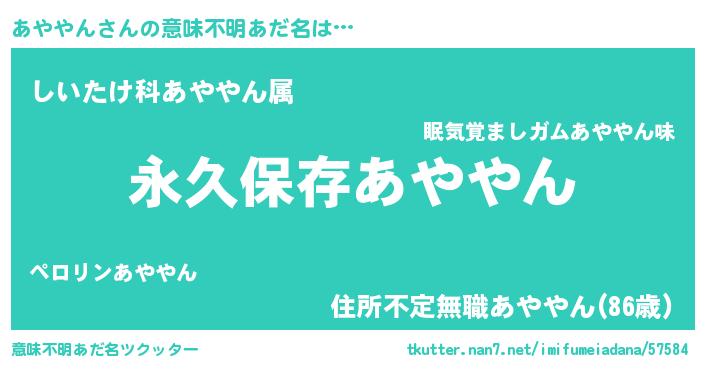 | 胡散臭い通販商品みたいなあだ名 | 『来世でも幸せになれる健康食品…その名も「あややん」』 |